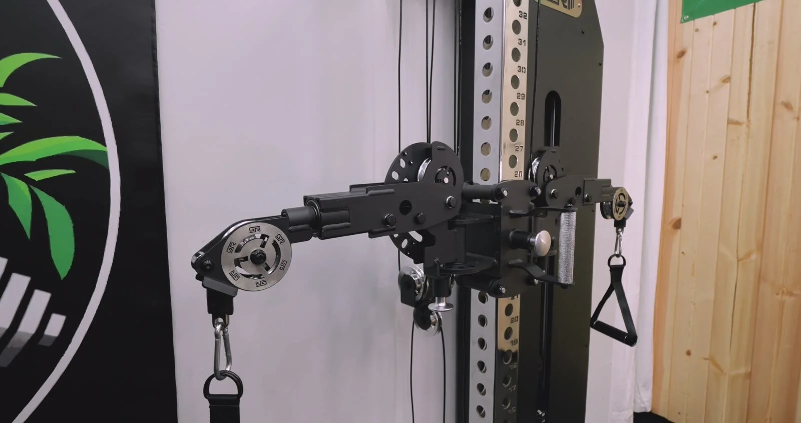 The arms are mounted to a single center trolley that rides on rollers along the front upright. While the rollers help with movement, the trolley assembly weighs roughly 40 pounds, so height adjustments are best done with two hands. It’s not a dealbreaker, but it’s worth understanding if you’re coming from lighter cable systems.
